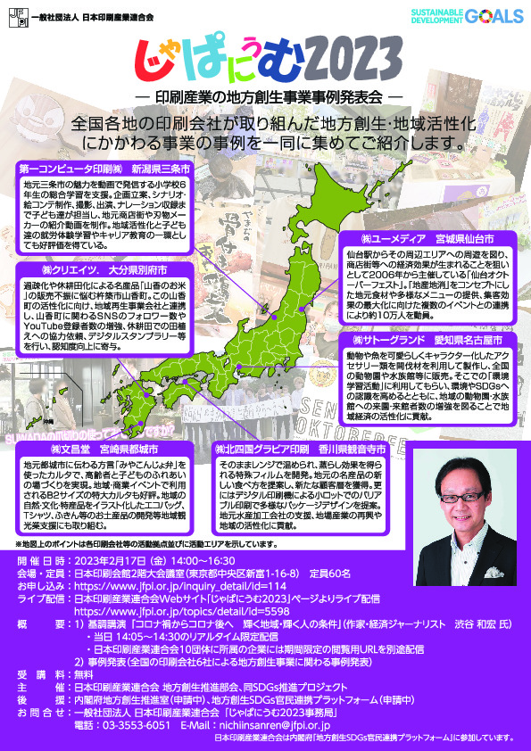 「じゃぱにうむ2023」とは、印刷会社が取り組む地方創生、地域活性化に関わる事業の事例発表会です。