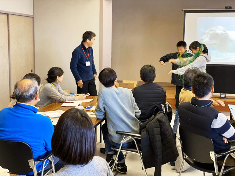 講座の中には漁の網に絡まった海洋生物が