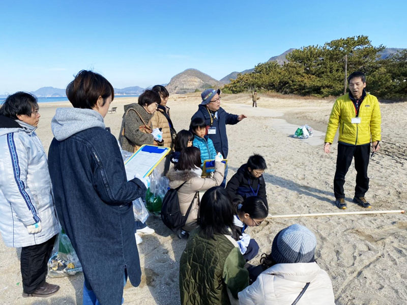 有明浜のゴミを拾いながらのフィールドワークなどを交え、