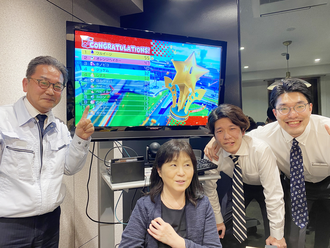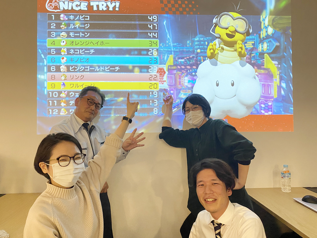 11月19日(金)、移転後初の東京レクリエーションを行いました。なかなか外に出づらいご時世、ならば完全インドアでできることと言えば。。。そう!eスポーツですね。種目はみんな大好きマリオカート。ゲーム上級者にはハンデを付けてのトーナメント、かなり白熱したバトルが展開されました。今回は東京メンバーのみでの開催ですが、次回(?)は本社も交えての開催も楽しそうです!
