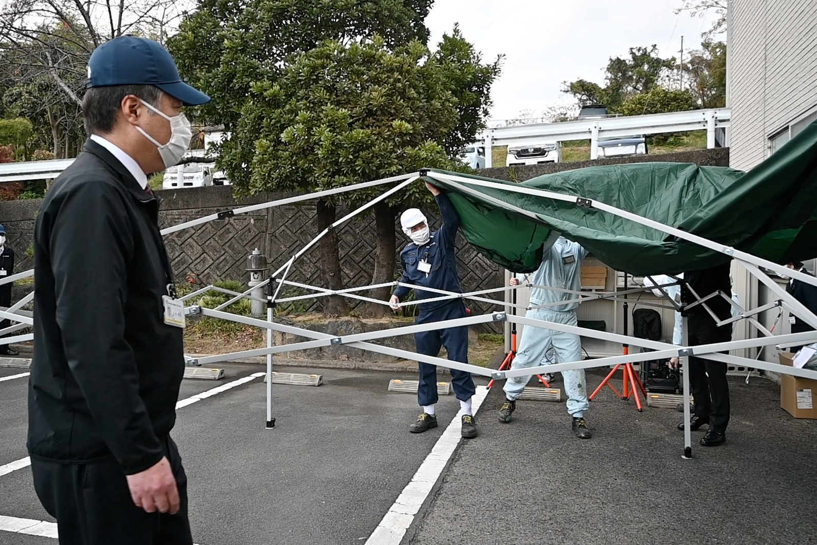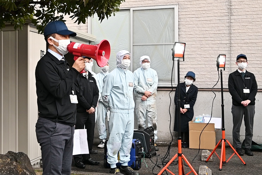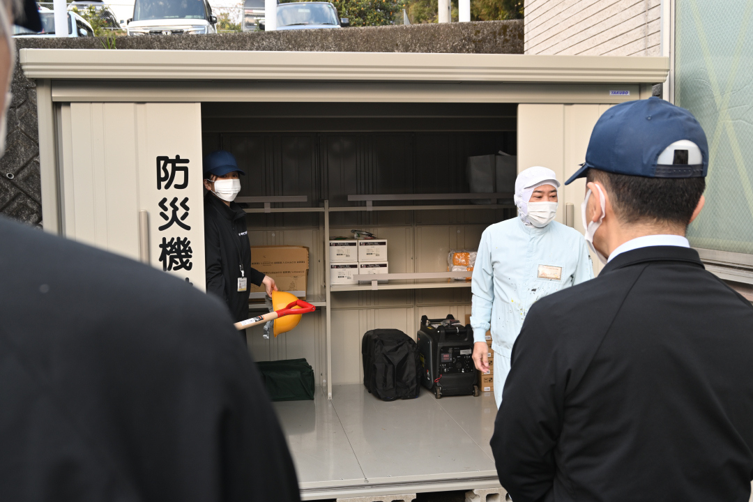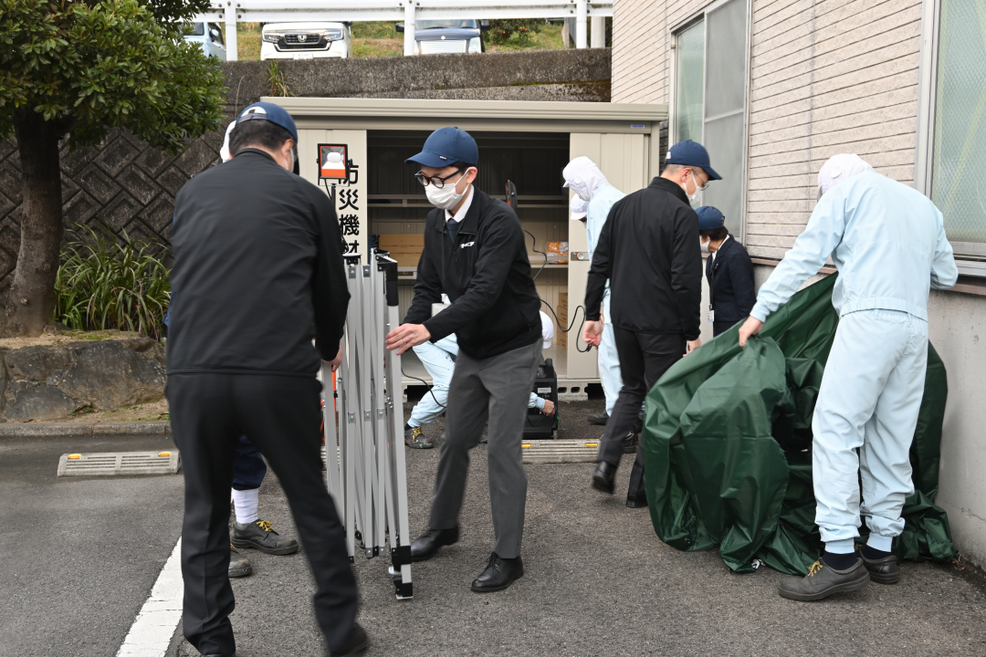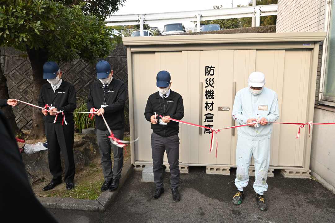 12月13日(月)の朝、避難訓練を兼ねて防災備蓄倉庫前に集まったグラビアーズ。