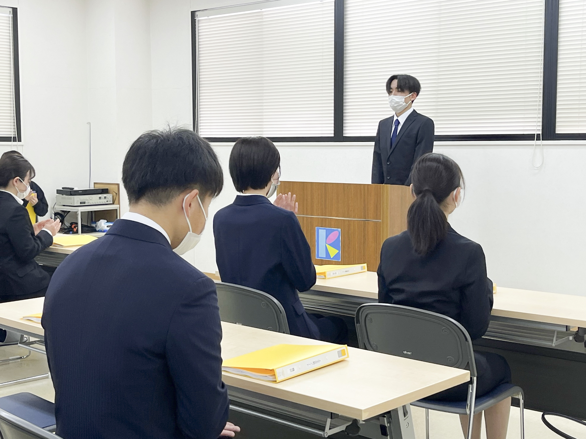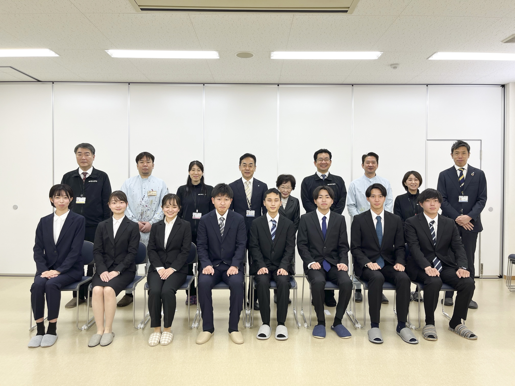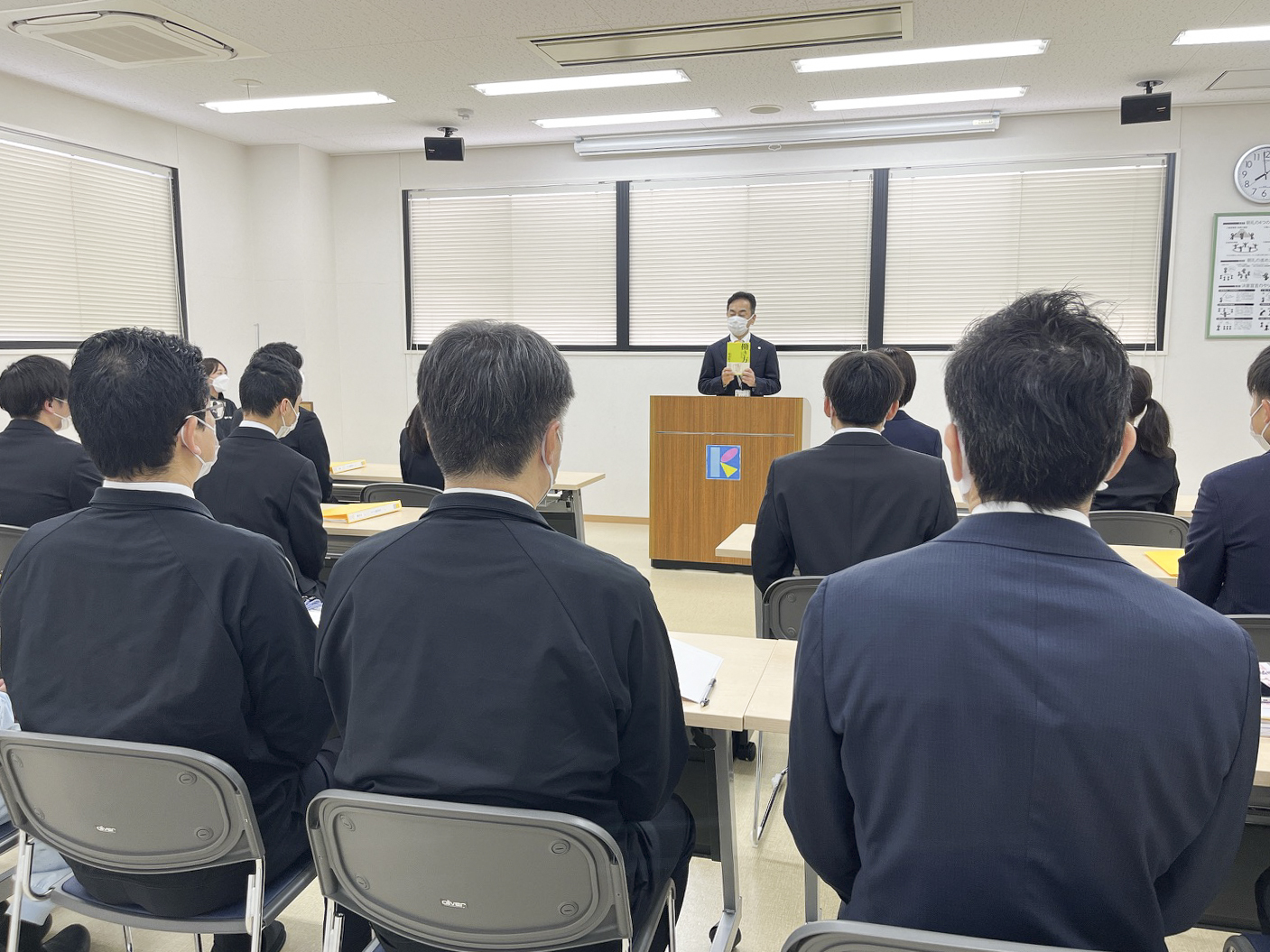 入社式では、社長・相談役・工場長・各部長が出席し、新入社員には一人ひとりしっかりと抱負を述べていただきました。