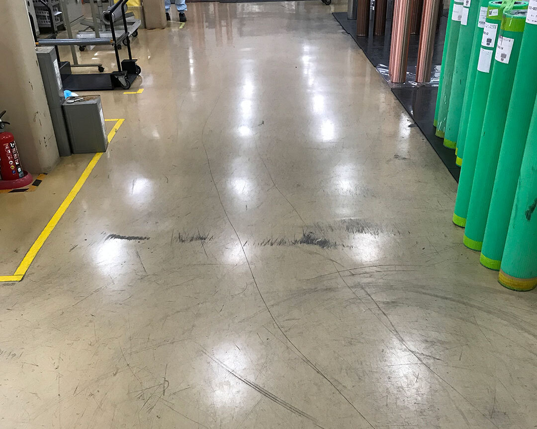 (上中央)製版施設の床面。掃除前は黒ずんでますが。。。