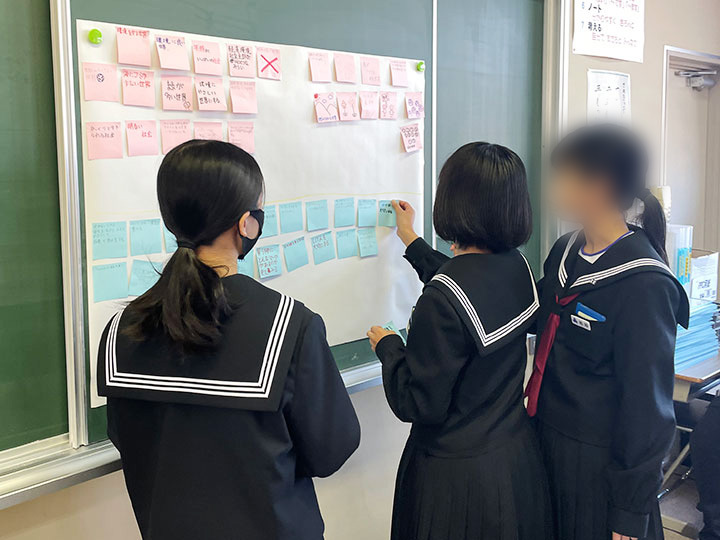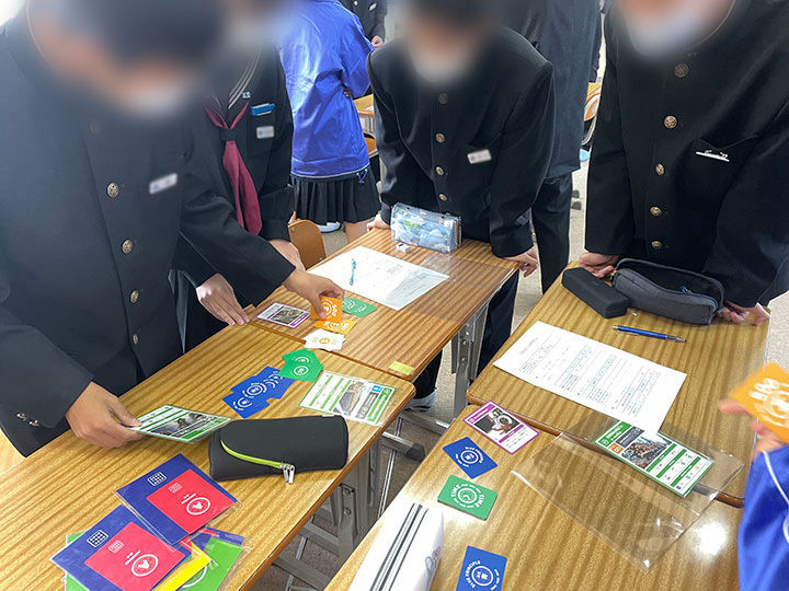 11月10日(木)、三豊市立三野津中学校(以下、三野津中)にて「2030 SDGsカードゲーム」を用いた出前授業を行いました。この日は地元企業の菅組さまから2名、当社から1名の計3名のファシリテーターで臨みました。対象の学生は中学1年生で、まだ面影にあどけなさが残る部分も。カードゲームに対する反応も純粋で、熱心に取り組んでくれました。2030年になっていたい姿や、どういった世界になっていてほしいかを一人ひとり付箋に書いてもらいましたが、シンプルながらもどれも大切なことばかりでした。一人では変えられない世界も、大勢の意識が変わり行動を起こせばインパクトを持ちます。これからもこういった草の根活動を続け、美しい2030年、そしてそこからつながる未来を目指します!