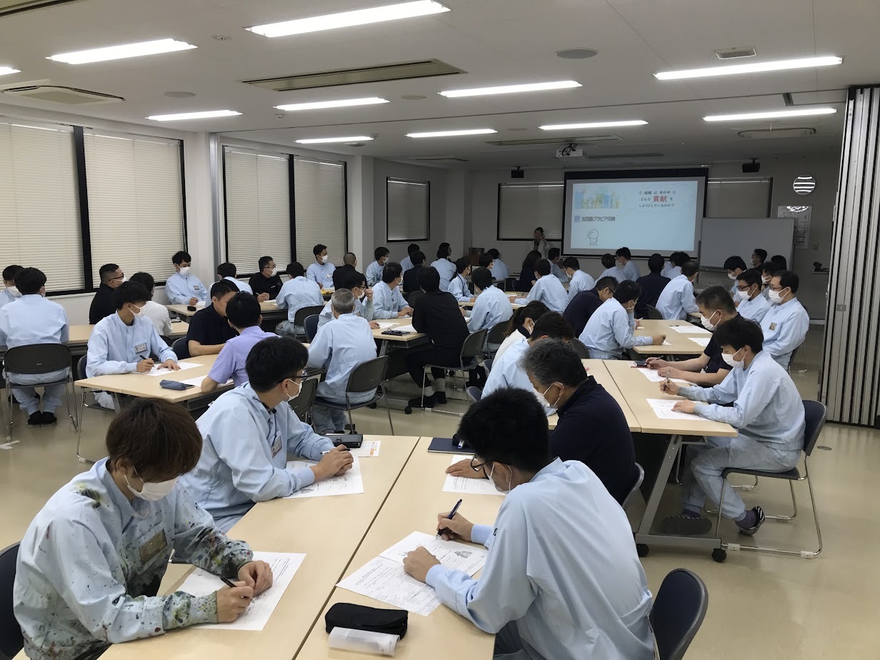 外部講師の方をお招きし、午前は教える側(リーダーなど)、午後は教えられる側の人で分かれて、それぞれ4時間ずつ役割や立場に見合った内容の研修を受けました。