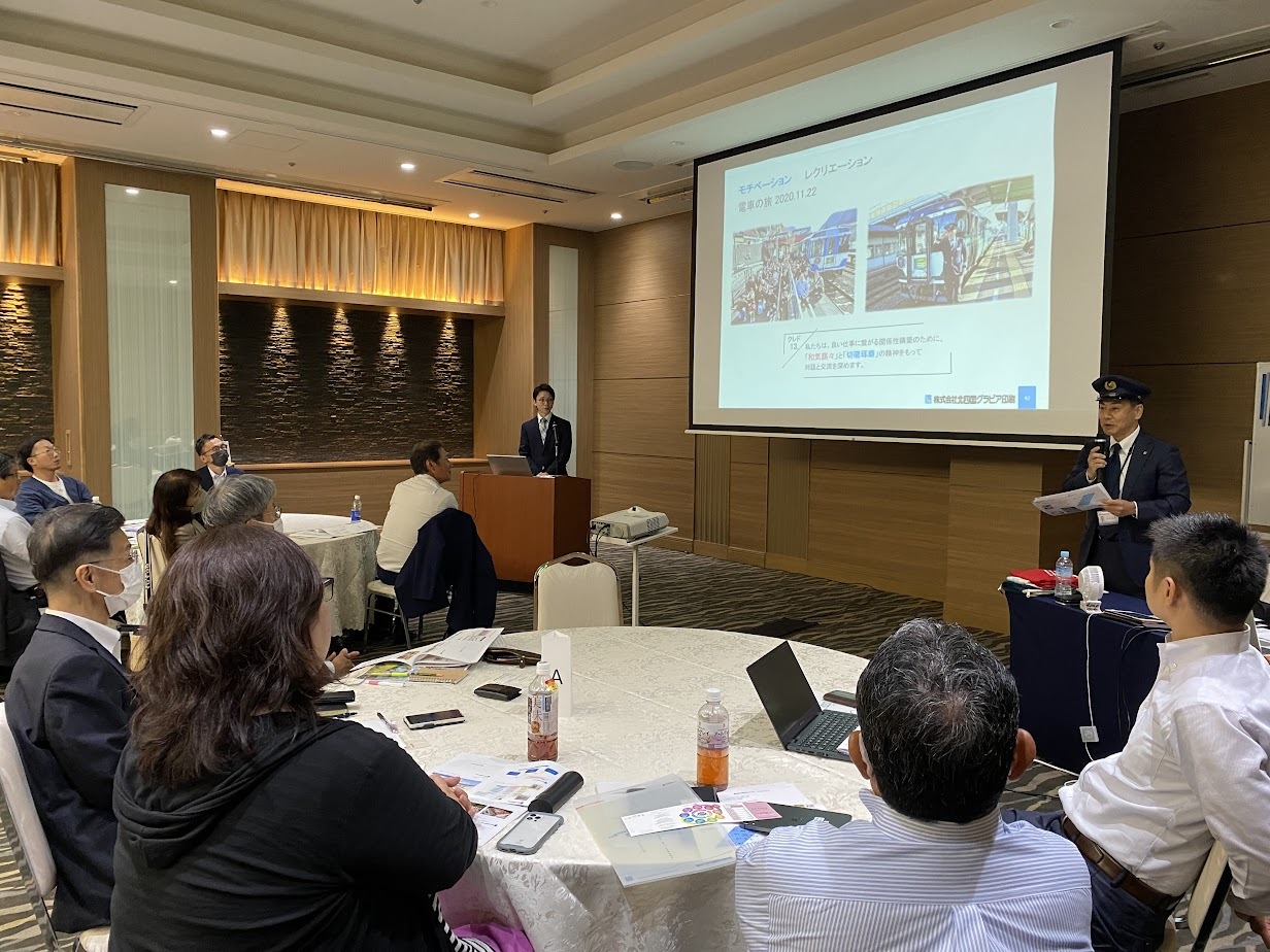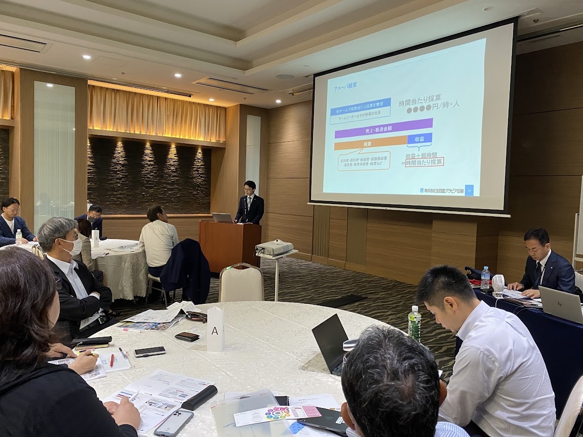 関西KC会とは、小宮一慶氏が経営する小宮コンサルタンツが「経営の原理原則、正しい考え方・生き方を学ぶ場」として関西で開催しているものです。そこで、「自律して貢献する人財育成と組織作り~経営理念の実現をめざす全員参加経営の取組み~」と題して、理念や委員会、ありがとうカードなど弊社の取組みについてお話させていただきました。また今回は初の試みとして、本社とネット回線をつないで掲示板などを実況中継しつつ説明を行いました。