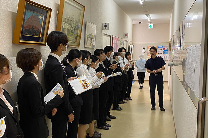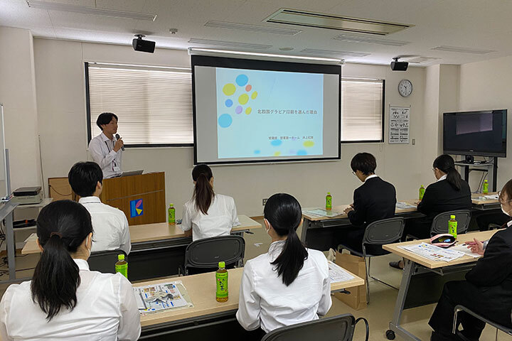 8月10日(木)、本社にてインターンシップを行いました。新型コロナ対策として長らくオンラインにて実施していたインターンシップですが、今回は4年ぶりのリアル開催。リアルならではの「体験」を多く盛り込んだ内容で当社の仕事を紹介しました。印刷時の調色体験、版下チェック時の校正体験など、実際の仕事で行う作業を簡易的に体験してもらいました。他にも今年入社の社員による会社説明や、ベテラン社員による社内取り組みの説明など、いろいろな角度から当社を知ってもらえるように考えました。