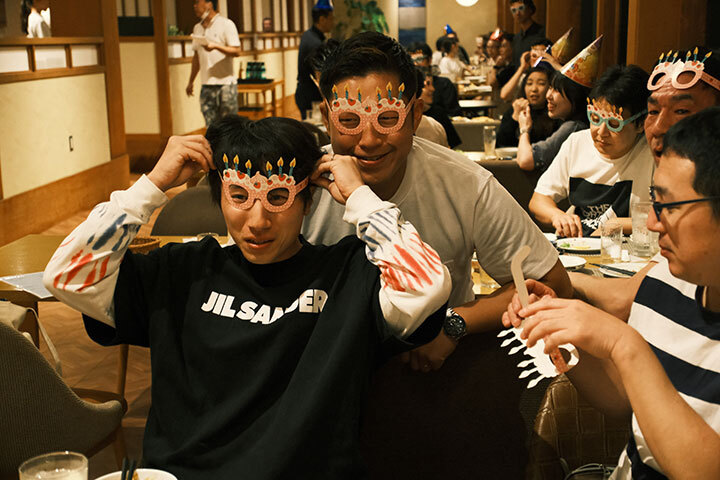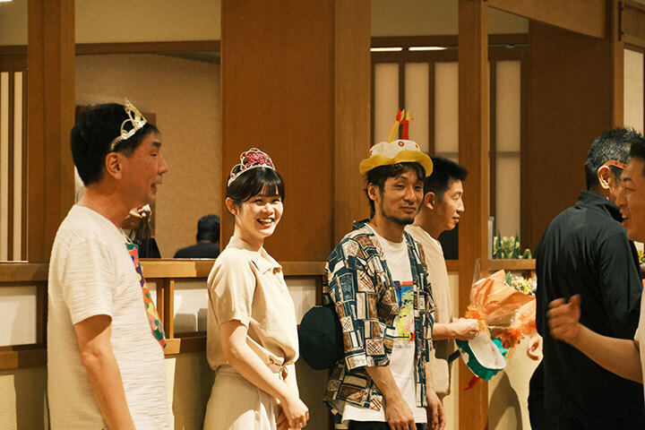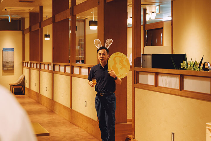 当日は残念ながら雨に降られてしまいましたが、手作りお月さまにウサ耳グラビアーズのおかげでもう月を見たも同然です。宴の中では「似顔絵当てゲーム」やバースデーサプライズなどの余興があり、楽しい秋の夜となりました。