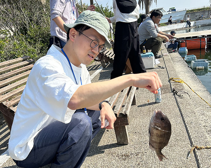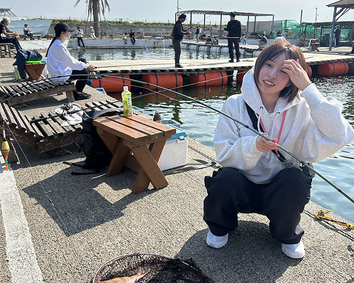 今回のレクで初めて釣りをしました。釣り堀なので、なんだかんだいってそこそこ釣れるんじゃないかと高をくくっていたら全くヒットしなかったです汗 周りが次々とヒットする中、自分にヒットが出ないのは焦りました。ようやくヒットしたと思ったら釣り上げる最中に逃げられる始末…。このまま釣れずに終わるのかなと思っていたらどうにか1匹釣り上げることができました。釣ったときは嬉しさより正直安堵しました笑 釣りたての鯛は身が引き締まっていて格別ですね!鯛以外にも青野さんが焼きそばをつくってくれたり、猫と触れ合ったりと楽しい時間を過ごせました!!