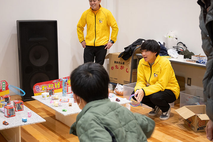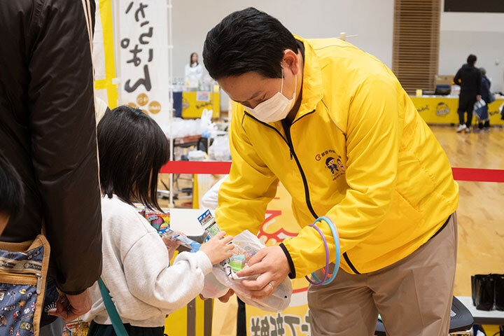 11月19日(日)、ハイスタッフホールで開催された「第6回 おいしいかんおんじ物産展」どっかんおんじにボランティアスタッフとして営業部メンバーが参加しました。昨年と同じく、駄菓子や輪投げでちびっ子大興奮のブースを担当。輪投げが成功すると、子ども以上に喜ぶスタッフがいたとかいないとか?ともあれ、今年も大盛況のどっかんおんじ。今後も「元気な観音寺」を体感できる場として続いてほしいものです。