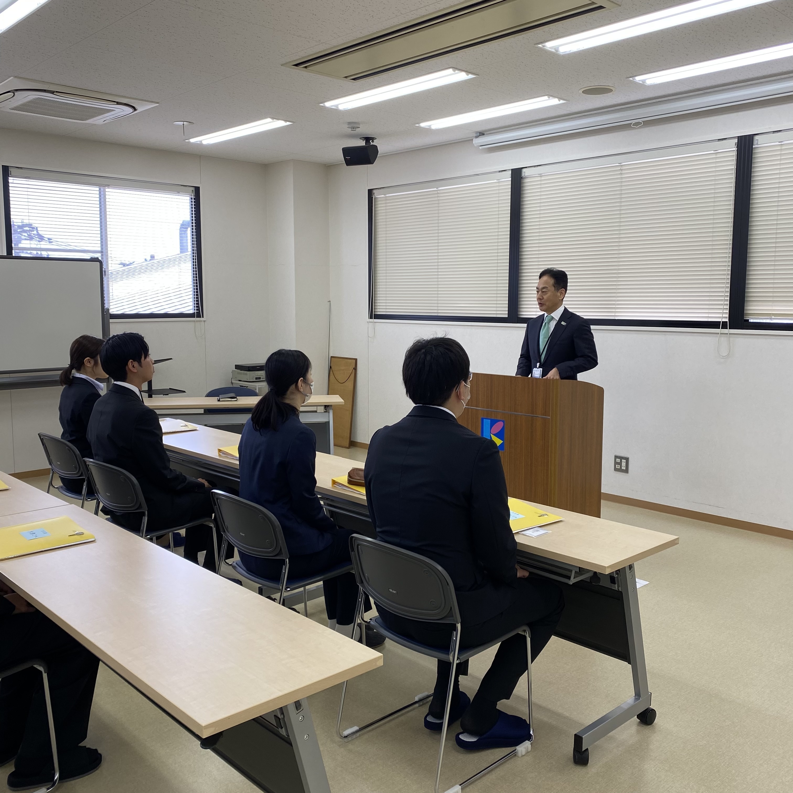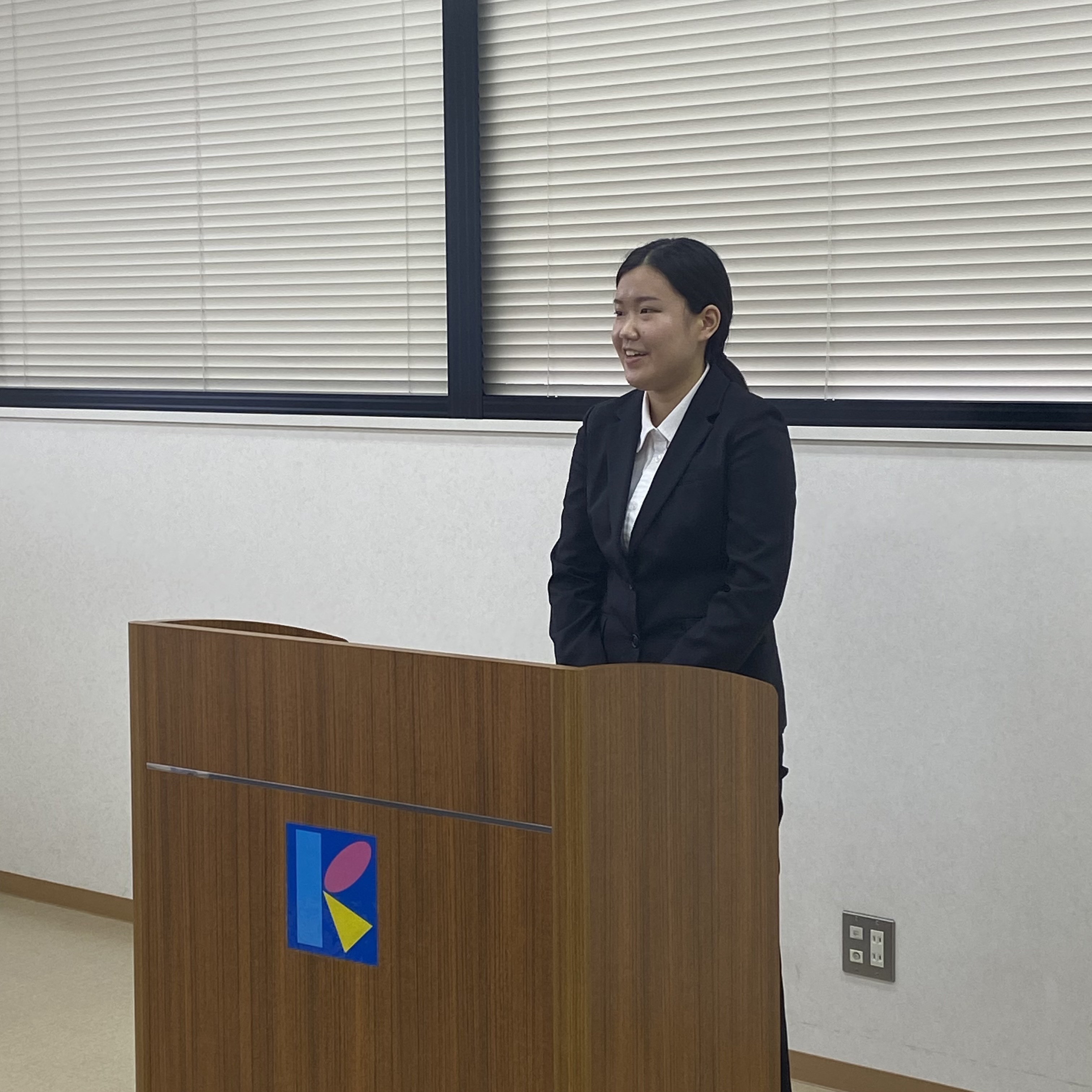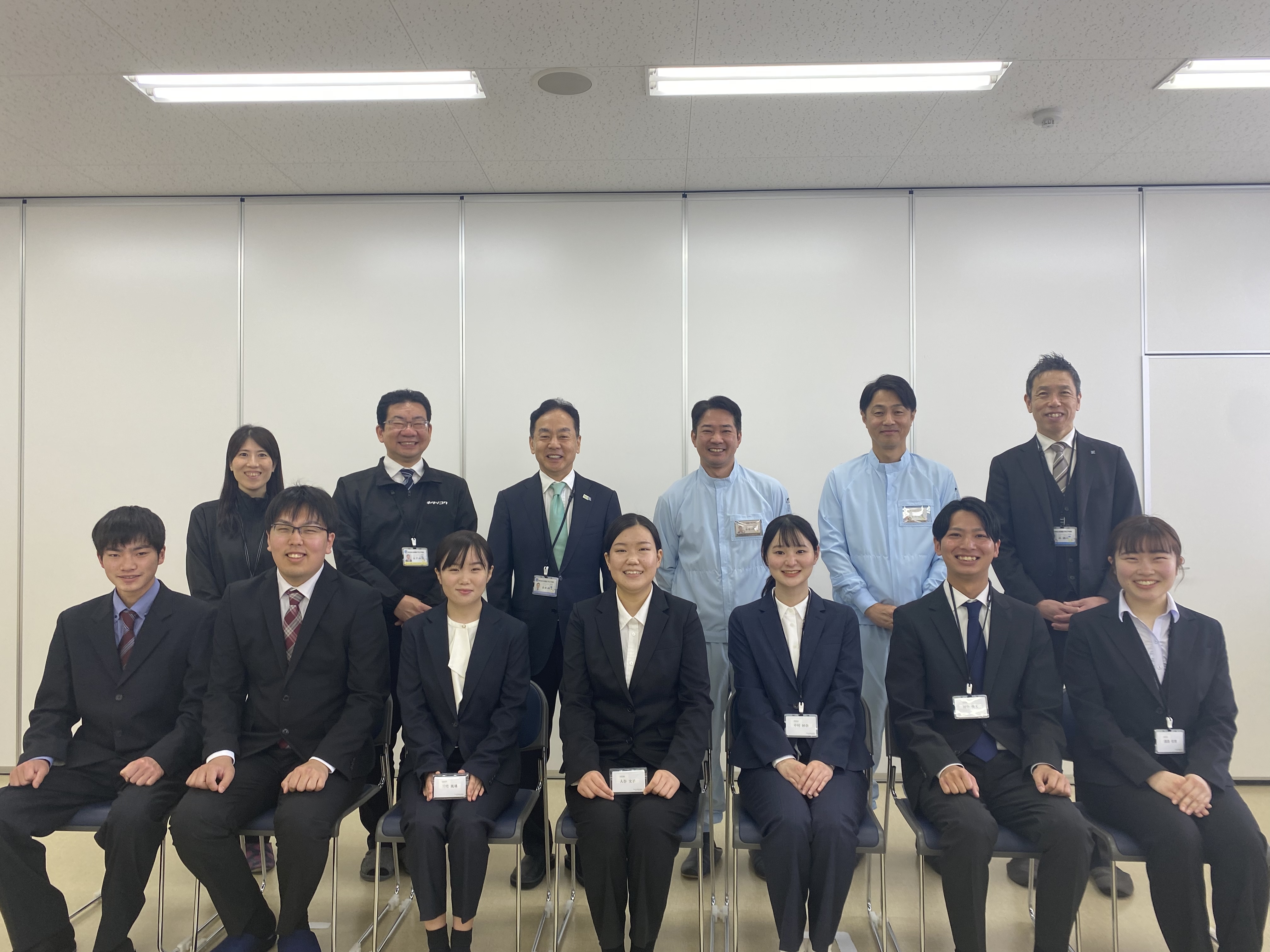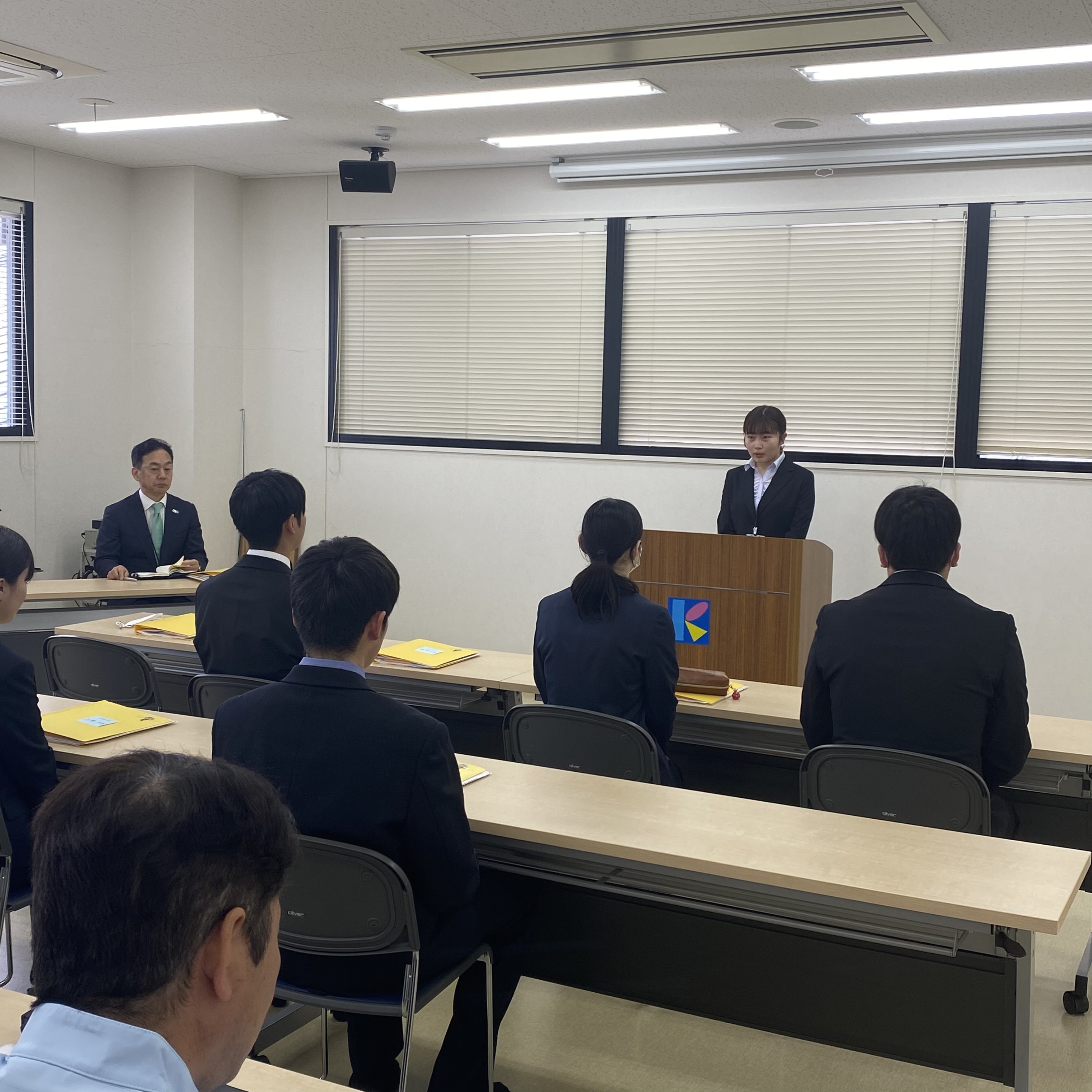 入社式では社長、工場長、部長が出席しました。新入社員は皆さん自分の言葉で心強い