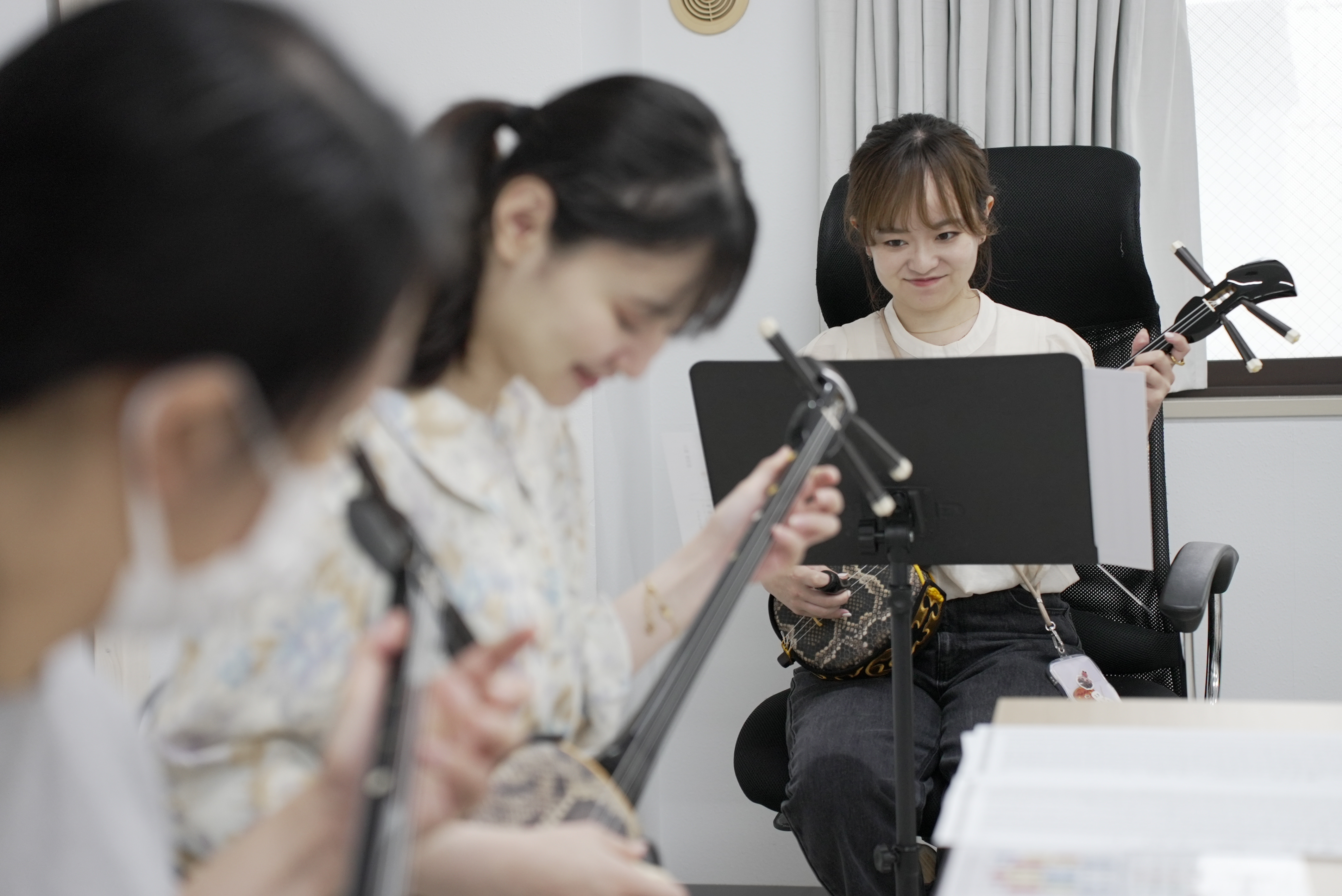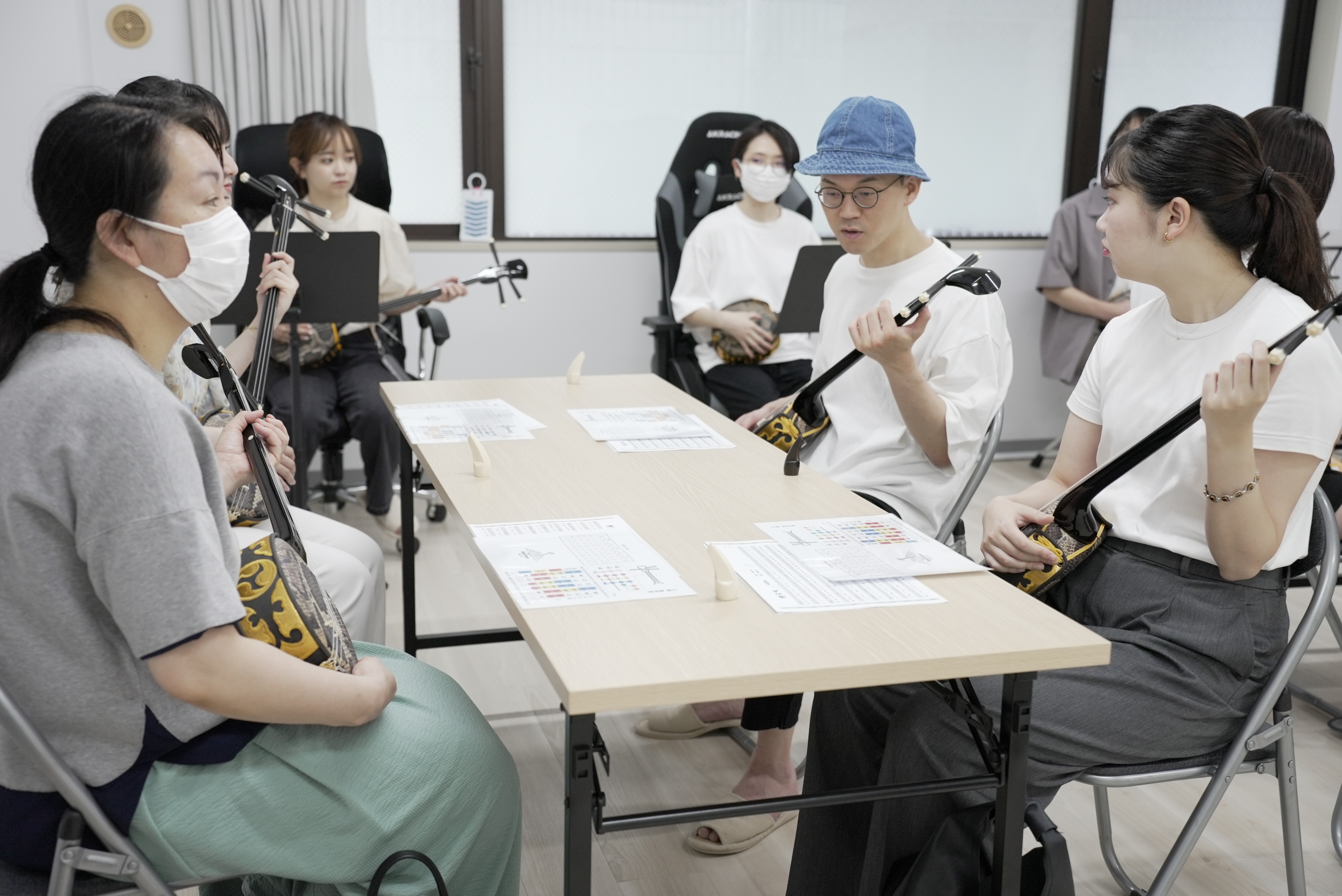 うに、三線は思いのほか弾きやすいと感じました。琉球文化についてもレクチャーしてい
