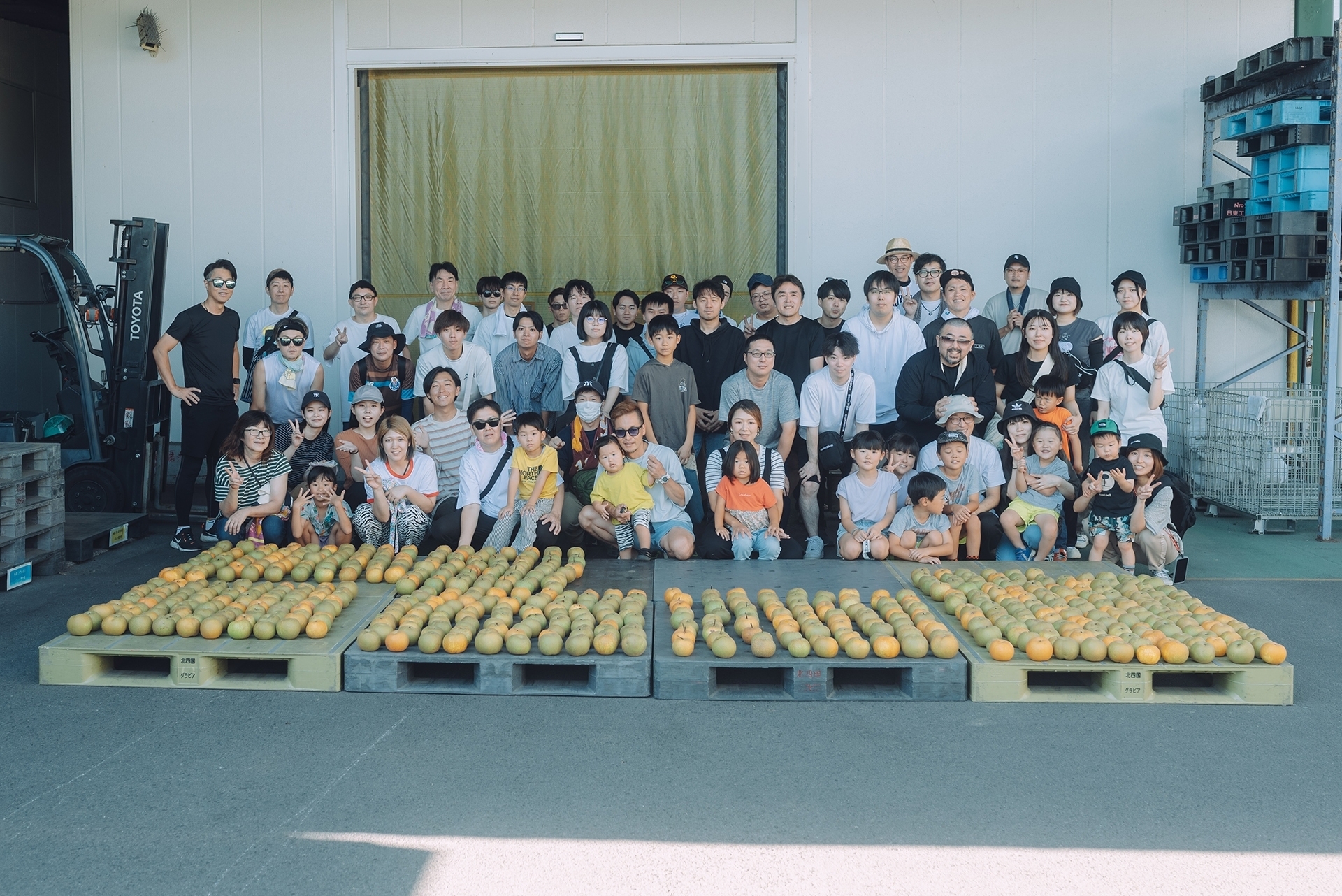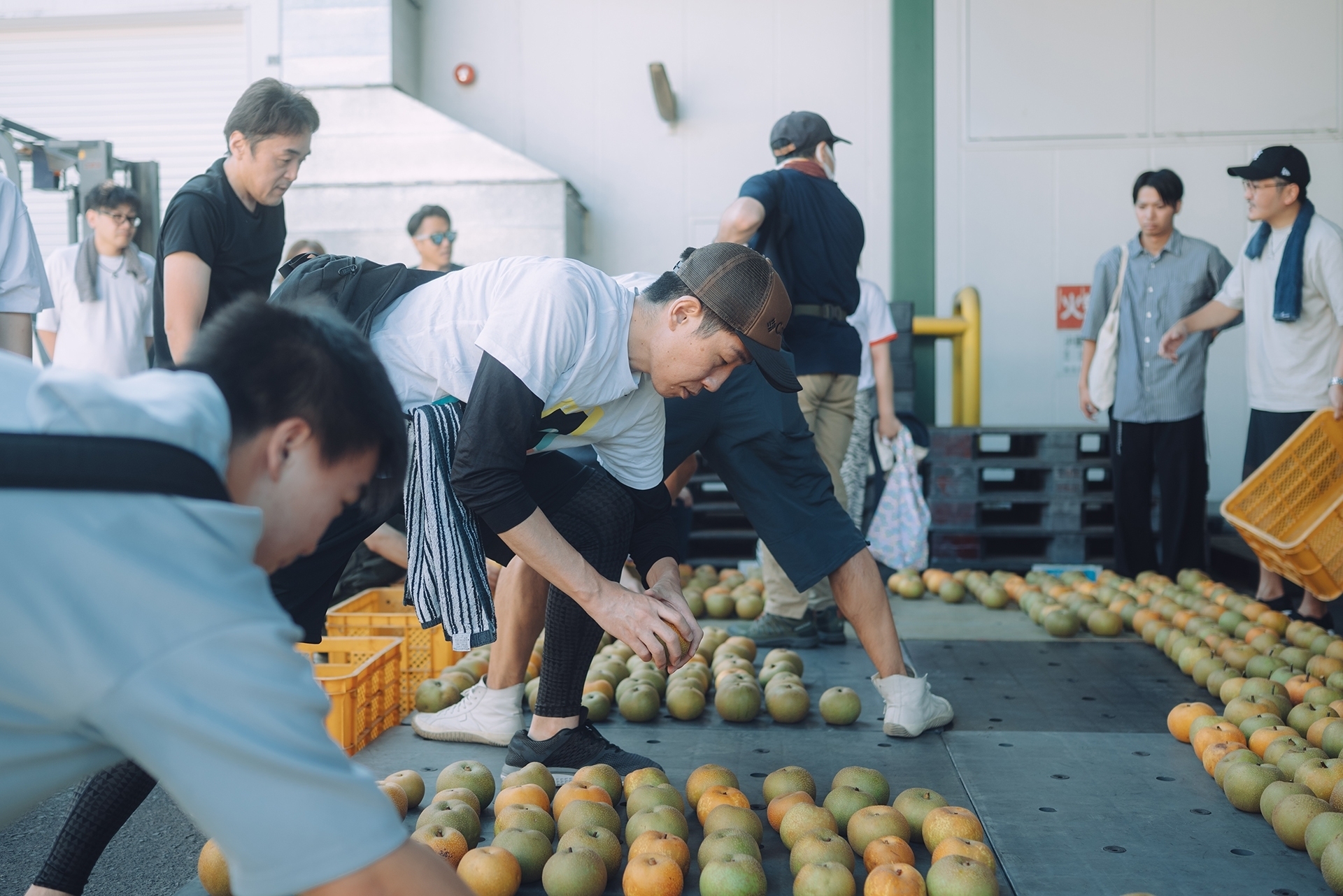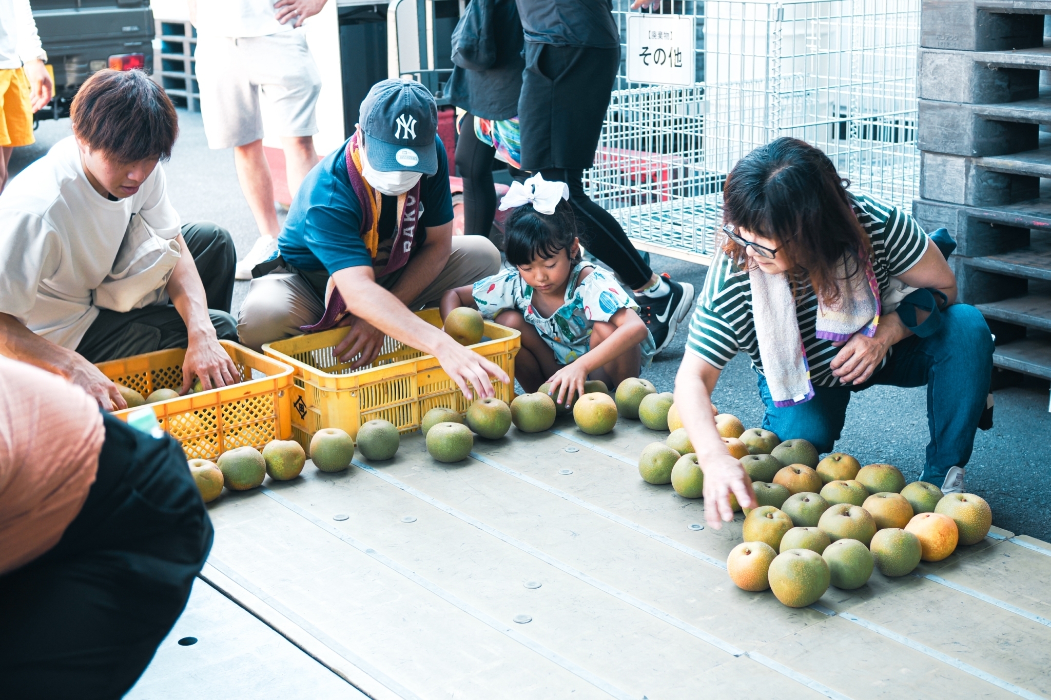 ご家族の参加もあり、短い時間で収穫することができました。今回は人数も多かったので刈り取り、運搬もスムーズに進行出来ました。今年の梨も瑞々しくておいしいです!
