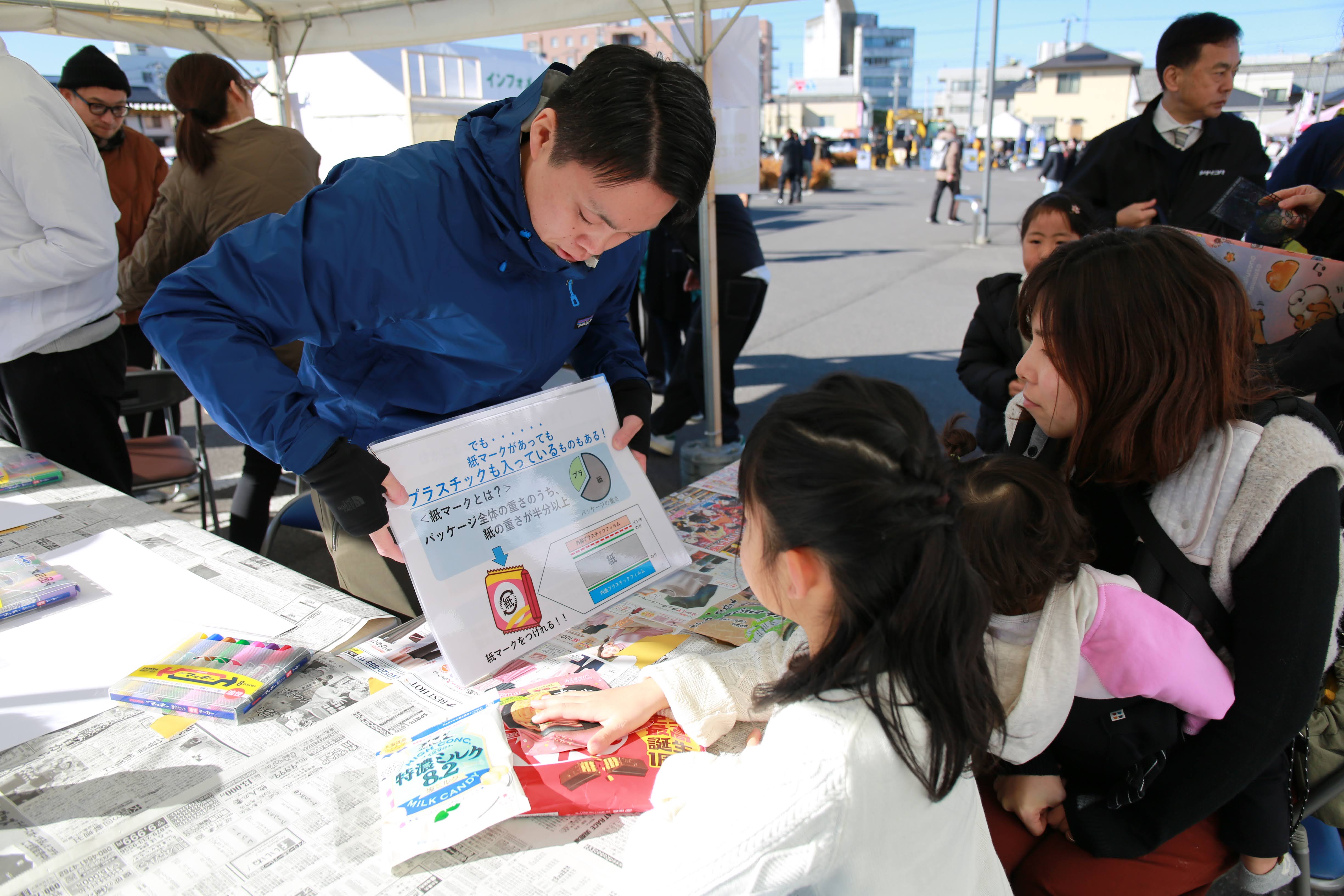 合わせてパッケージに使用される素材や紙マーク、リサイクルマークの話を通じて、環境についても学ぶことができるワークショップとなりました。