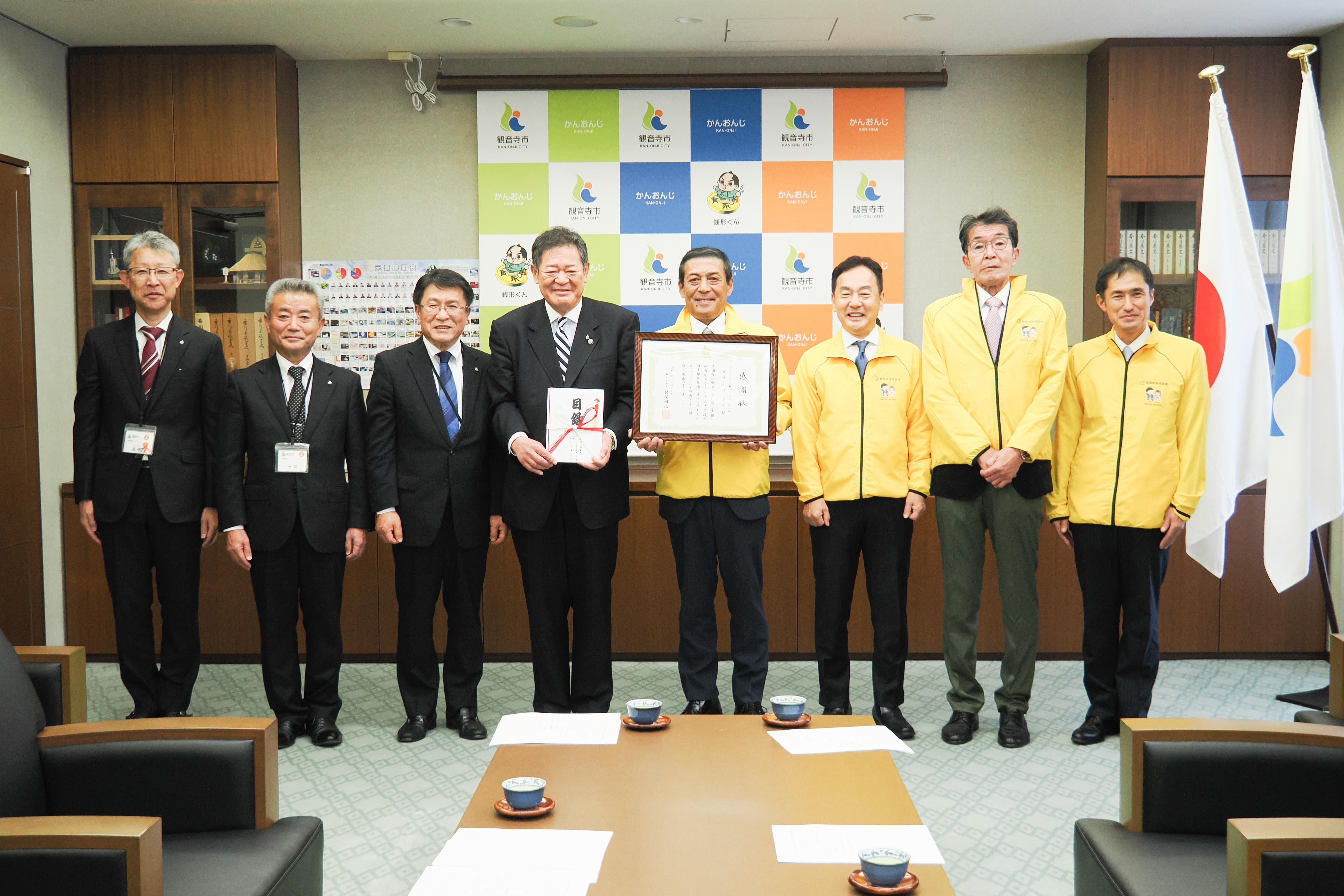 「第8回おいしいかんおんじ物産展」の収益金および寄付金を観音寺市へ贈呈いたしました