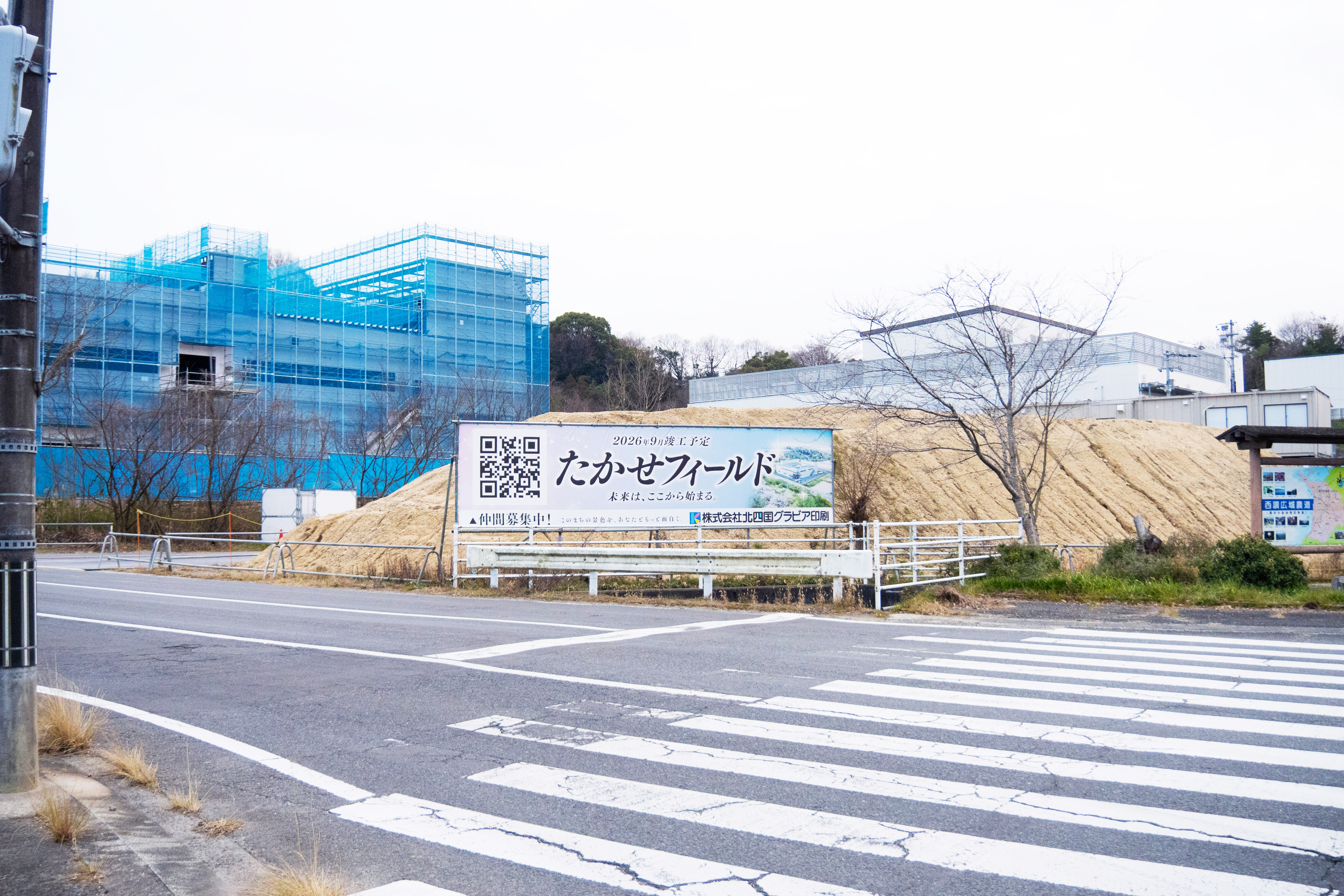 新工場「たかせフィールド」屋根工事完了・求人看板を設置しました