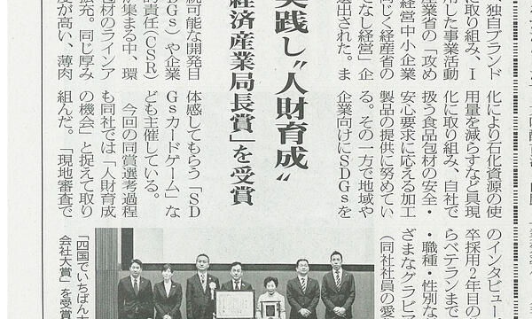 令和元年度 第9回 四国でいちばん大切にしたい会社大賞 にて 「四国経済産業局長賞」を受賞いたしました!!