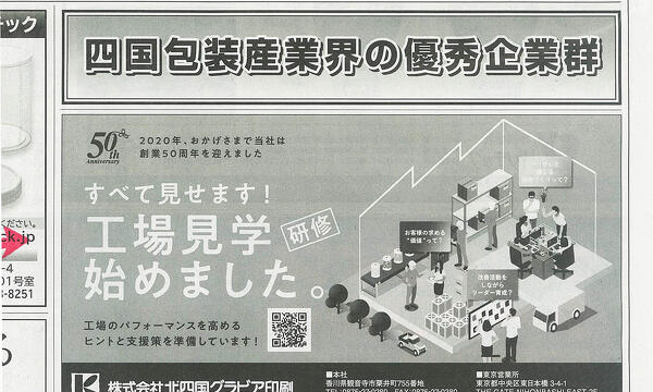 包装タイムス No.2919に四国包装産業界の優秀企業として当社の広告が掲載されました