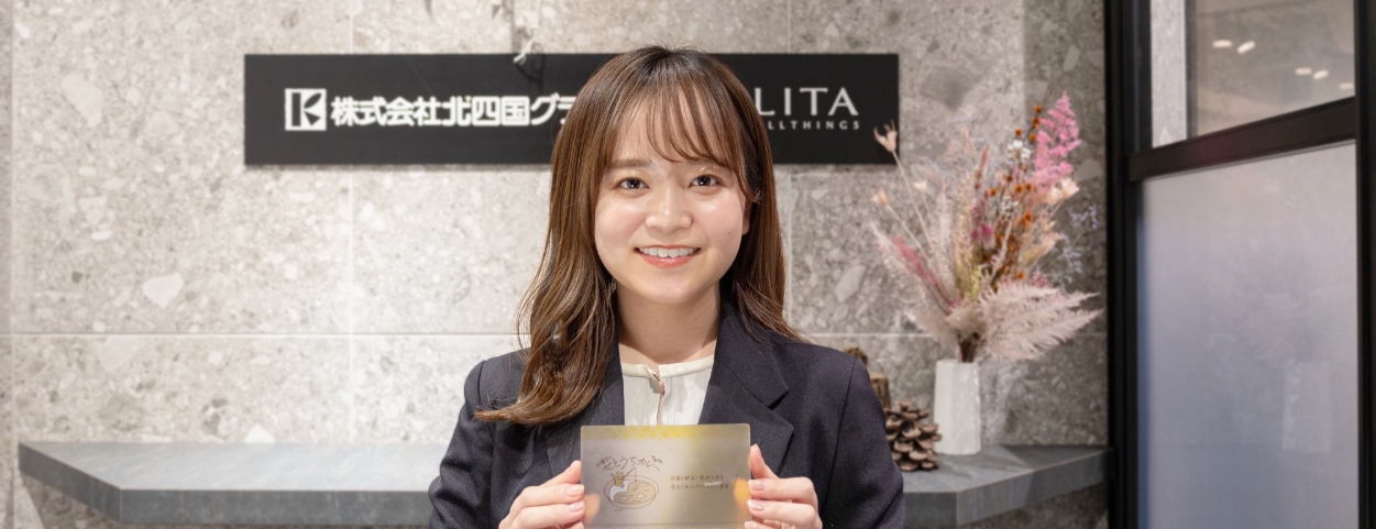 仕事の内容と、一緒に働く社員の方々との関係性を見て入社を決めました。もともとパッケージ製作に携わりたかったのですが、お客さまと一緒に作り上げる提案型の営業ということで興味を持ちました。また、就活中で学生の私に対しても対応が丁寧で、こういう方たちと働ける環境にも惹かれました。