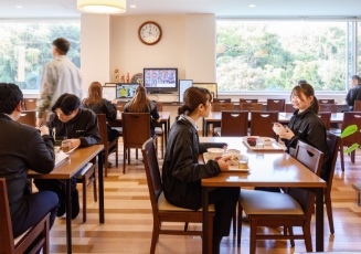 社員食堂では、自社の厨房で調理された栄養バランスの取れた温かい食事を社員価格で食べることができます。また、食事や休憩時は他の部署の人とコミュニケーションをとりながら楽しく過ごす憩いの場として利用されています。