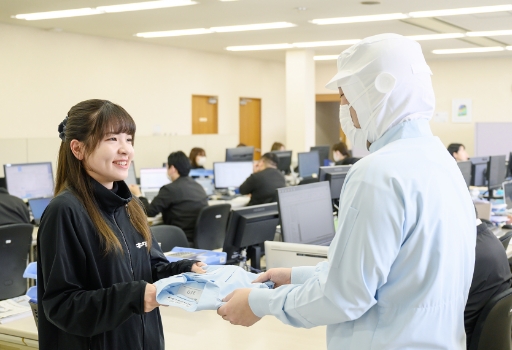 さまざまな形態の製品をお客さまのもとへ安定してお届けすることが、営業事務チームの主な業務内容です。基幹管理システムにより製品の受発注を管理し、お客さま、営業チーム、製造部と連携しながら製品を安定してお客さまへお届けします。また、定期的にお客さまに訪問し、コミュニケーションを取ることも重要な仕事です。