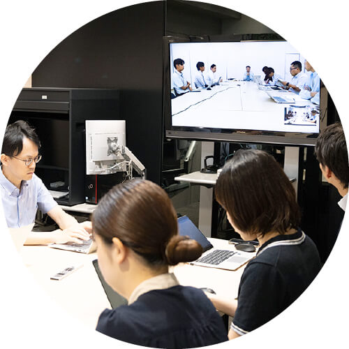 拠点間のコミュニケーションを活性化させるため、毎日の朝礼や部門会議にはリモート会議システムを活用しています。各所をリアルタイムでつなぎ、情報共有を円滑に行うことで業務をスムーズに進めています。