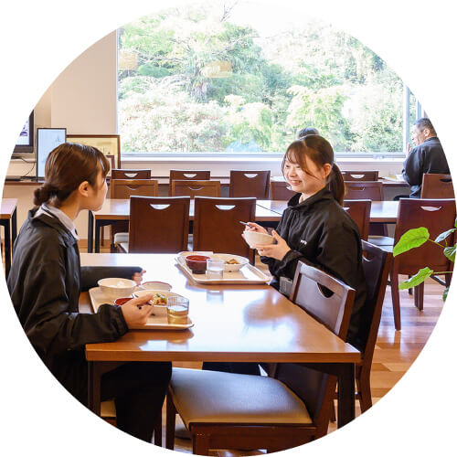 社員食堂があるため、栄養バランスの取れた温かい昼食を摂ることができます。また、同僚や他の部署の人とも一緒に食事を摂ることでコミュニケーションの場にもなっています。